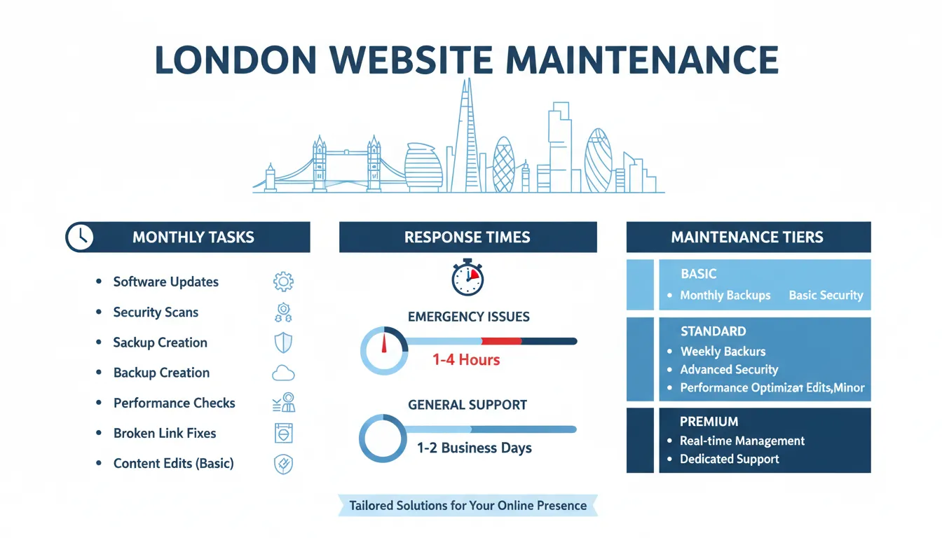 Maintaining a high-performing, secure, and up-to-date website is essential for the success of any business in London. By understanding the key components of website maintenance and the different tiers of service available, you can choose the right plan to support your business needs and achieve your online goals.